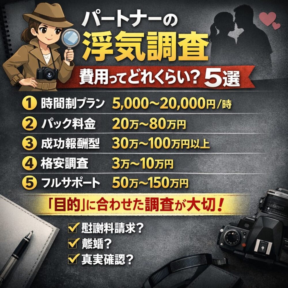 🔵【ママ探偵】パートナーの「浮気調査」費用ってどれくらい?…5選