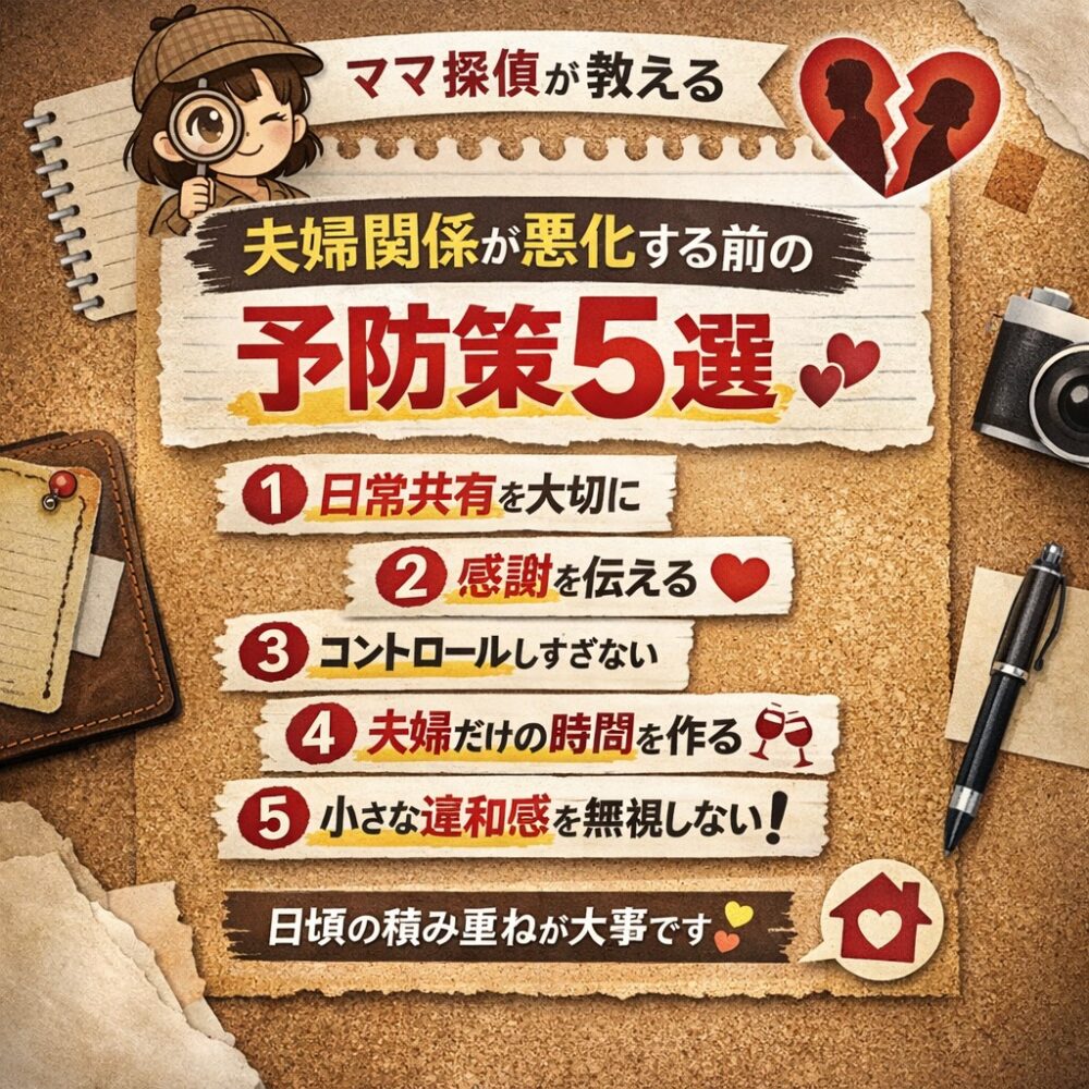 2026年3月14日 / 最終更新日時 : 2026年3月14日 astotantei 👧浮気調査 🔵【ママ探偵】パートナーの「浮気調査」夫婦関係が悪化する前の予防策…5選 アスト探偵事務所大阪 京都滋賀 奈良 兵庫 和歌山 お持ちの悩み(問題)を解決しませんか???。楽しい毎日、幸せな生活を取り戻しましょう。「探偵の知恵袋」好評/配信中!!アスト探偵事務所は相談無料です。お気軽にご相談ください。 無限ループ 【ママ探偵】パートナーの「浮気調査」夫婦関係が悪化する前の予防策…5選 はじめに 近年、浮気調査の相談を受けていると、実際に浮気が始まる前から 夫婦関係の小さな変化 が起きているケースが非常に多いです。 read more